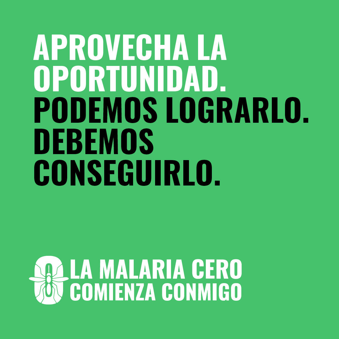 La próxima generación podría crecer en un mundo libre de malaria. La malaria cero empieza conmigo. Podemos lograrlo. Debemos conseguirlo.